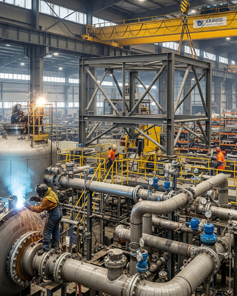 • Static Process Equipment and Structures HMEC provides comprehensive solutions for designing, fabricating, and installing static process equipment. Our expertise includes manufacturing components like boilers and heat exchangers, which adhere to standards like IBR, TEMA, and ASME. We also specialize in storage tanks and silos, which are fabricated according to API standards. Furthermore, we handle the design, fabrication, and installation of industrial steel structures, including PEB (Pre-Engineered Building) structures
